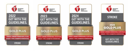 University Hospital participates in Get With the Guidelines® – Stroke, a hospital-based program of the American Heart Association/American Stroke Association for improving stroke care by promoting consistent adherence to the latest scientific treatment guidelines. In 2025, for the thirteenth year in a row, University Hospital received recognition for Gold Plus Achievement for successfully meeting or exceeding research-based standards for the diagnosis and treatment of stroke patients.